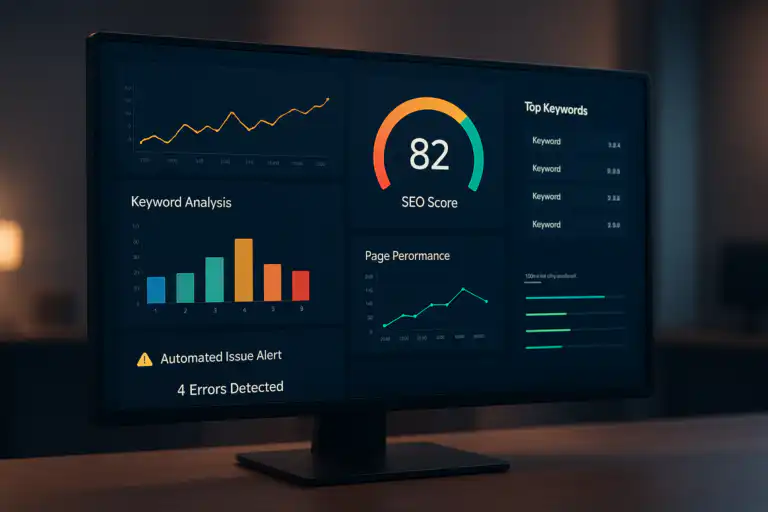 A modern AI-driven onpage SEO audit dashboard consolidates hundreds of signals into one actionable view.