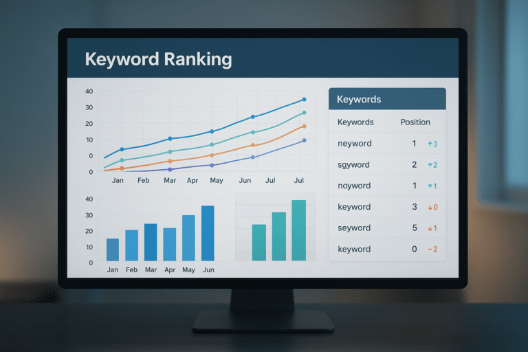 A modern AI rank checker dashboard gives you an at-a-glance view of keyword movements, trend lines, and competitive positioning.