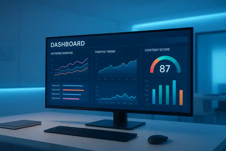 A modern AI SEO platforms dashboard centralizes keyword data, content scoring, and ranking forecasts into a single actionable view.