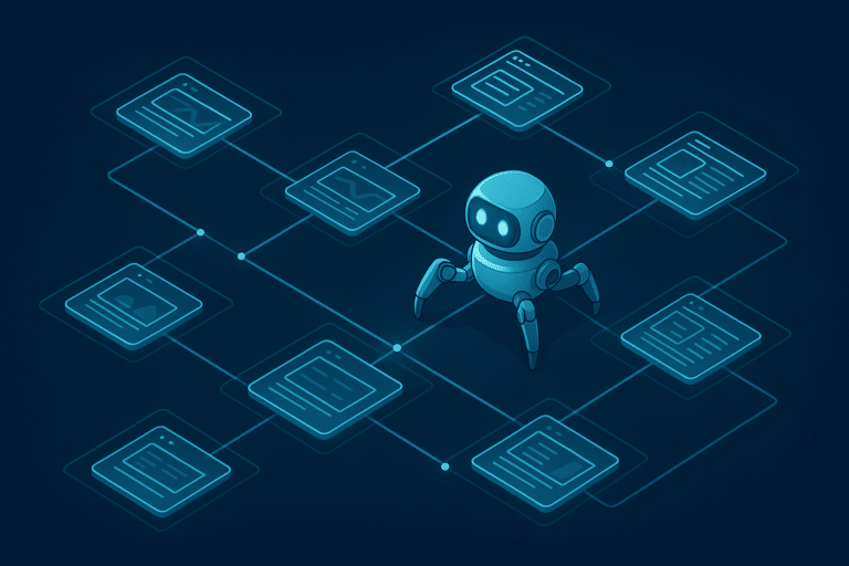 A web crawler (also called a spider or bot) is an automated program that navigates the web by starting at a seed URL, reading the page’s content, extracting all hyperlinks, and then visiting each of those linked pages in turn. This recursive process continues until the crawler has visited every reachable page within the defined scope — or until it hits a limit you set.